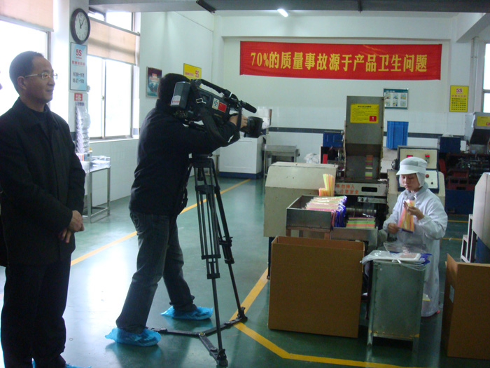 上圖:《中國財經(jīng)報道》欄目組記者到我司吸管生產(chǎn)車(chē)間采訪(fǎng)拍報
