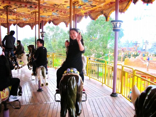 云霄飛車(chē)、海盜船、旋轉木馬、翻天覆地,每一個(gè)游樂(lè )項目前都晃動(dòng)著(zhù)帶著(zhù)雙童標志的白色帽子,每一個(gè)風(fēng)景秀麗處都有我們的歡聲笑語(yǔ)飛出。大家互相交流著(zhù)自己對每一個(gè)游樂(lè )項目的感受,到處都是興奮的笑臉。