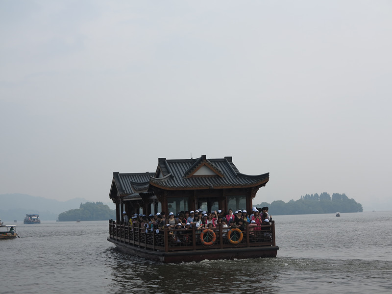 首先,第一站就是美麗的西子湖畔。不過(guò),同往年不同的是,今年的旅游行程并不是沿途徒步欣賞美景,而是乘坐龍船,在碧波蕩漾的水面上欣賞西湖另一角度的美景。不過(guò),由于我們雙童人數眾多,要整整三艘龍船才能載得下呢!為了更好地識別我們的“雙童人”,我們每個(gè)人都發(fā)到了一頂印有雙童標志的小白帽,在公司內以證示人,在公司外就要以帽示人啦!看,一整船的小白帽,是不是很壯觀(guān)呢?