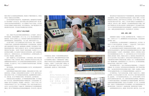 我們試圖從多個(gè)角度去驗證對生產(chǎn)車(chē)間的觀(guān)察所得,找到訂單處理能力的關(guān)鍵所在,但實(shí)際上企業(yè)沒(méi)有功夫去總結這些,尤其是“柔性”,對于真正的制造業(yè)從業(yè)者來(lái)說(shuō),這兩個(gè)字有點(diǎn)讓人不知所謂。對于生產(chǎn)管理方式,雙童并沒(méi)有真正賦予它某個(gè)詞匯。實(shí)際上,在小客戶(hù)原則這個(gè)大的戰略思想之下,長(cháng)期以來(lái),面對小單、散單、特殊的單,無(wú)論是物料準備還是生產(chǎn)調度,雙童的生產(chǎn)管理者已經(jīng)了然于胸,他們其實(shí)一直在踐行柔性生產(chǎn),但正如樓仲平所說(shuō),“關(guān)于生產(chǎn)的很多東西其實(shí)都在車(chē)間主任的腦子里”。這是很多中小企業(yè)的獨到之處——最核心的東西沒(méi)有形成文件,有文件的你又不一定學(xué)得來(lái)。