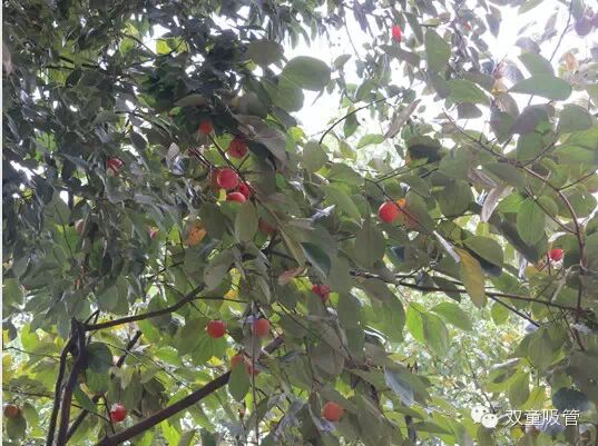 看,一邊是夏天的荷花盛開(kāi),另外一邊,掛滿(mǎn)枝頭的柿子已經(jīng)漲紅了臉,好像在對人說(shuō):“咋還不來(lái)摘我捏!”