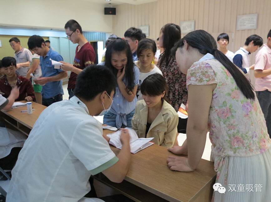 看看,這幾個(gè)妹子,在抽血項目前也是體現除了女生的嬌弱一面,怕怕的表情讓吸管君蹲守在這個(gè)項目邊都舍不得離開(kāi)!而胸透項目時(shí),大家都需要輪流站在機器面前抱著(zhù)機器“掃一掃”,看著(zhù)也是萌萌噠!