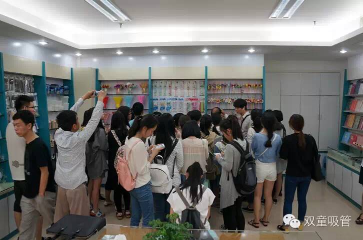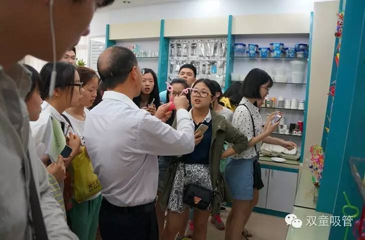 而當參觀(guān)隊伍匯總到樣品房時(shí),當家人的“導游”講解更加賣(mài)力了: “這根吸管埋在土里三個(gè)月就能自行降解,因為它是玉米淀粉做的?!?“哇!” “這根吸管有二十多個(gè)零配件,有好幾項專(zhuān)利?!?“哇!” 在雙童吸管樣品房里,隨著(zhù)當家人樓總對產(chǎn)品的介紹,浙師大的妹子們一起發(fā)出的贊嘆不絕于耳!