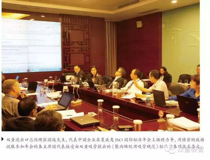 2008年《聚丙烯飲用吸管》國家標準在義烏天恒酒店審核通過(guò)標準起草委員會(huì )成立后,雙童吸管代表中國企業(yè)會(huì )同國家標準化委員會(huì )專(zhuān)家小組,在2012年6月初召集國內吸管行業(yè)的十多家生產(chǎn)企業(yè)在義烏天恒酒店召開(kāi)了《聚丙烯飲用吸管規范》國際標準國內分組研討會(huì ),通過(guò)與會(huì )企業(yè)和標委會(huì )專(zhuān)家的討論分析,決定采用屬地原則的有利條件,在中國國家標準的基礎上進(jìn)行國際標準的條文延伸和編輯,以在最大程度上有利于中國吸管行業(yè)企業(yè)的健康發(fā)展。