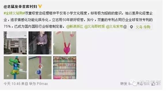 義博會(huì )期間,由義烏市委宣傳部主辦、中國義烏網(wǎng)承辦的2015“網(wǎng)絡(luò )達人義烏行”活動(dòng)正式舉行。@寒殘一葉、@老鼠皇帝、@首席村婦等全國知名微博攝影師達人、新媒體記者先后走訪(fǎng)義烏國際商貿城、青巖劉、義烏港、雙童吸管等地方,感受和體驗義烏濃郁的商業(yè)氛圍、多樣的人文風(fēng)貌和良好的經(jīng)貿環(huán)境。