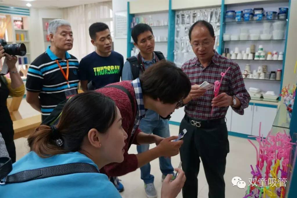 接著(zhù),網(wǎng)絡(luò )媒體團的一行眾人先是來(lái)到了位于綜合樓二樓的創(chuàng )新吸管樣品室,由樓總向眾人介紹我們的一系列創(chuàng )新吸管產(chǎn)品。一款款創(chuàng )意十足、富有童真的創(chuàng )新吸管引起了大家的強烈關(guān)注,尤其是幾位女記者們,簡(jiǎn)直是愛(ài)不釋手!而當看到我們的可降解吸管時(shí),則紛紛點(diǎn)頭贊許雙童的環(huán)保理念。