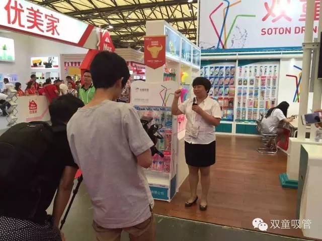 展會(huì )上,朱芳珍在媒體鏡頭前為雙童代言