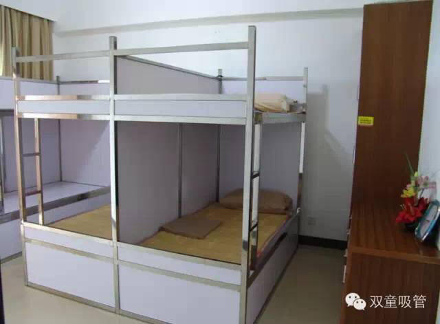 所有員工宿舍按三星級賓館客房進(jìn)行配置和管理,普通員工4~6人一間,技術(shù)員和夫妻員工兩人一間,中高層管理人員擁有廚衛齊全的套間。所有房間都帶有豪華衛生間,24小時(shí)免費供應熱水。提供員工免費的工作服、床單、床被、床套、枕頭、墊被、毛巾、茶杯、洗手液等,宿舍衛生由阿姨專(zhuān)人打掃。