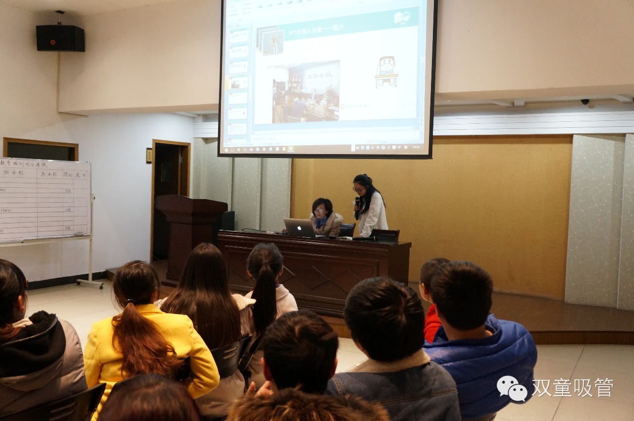 在近兩個(gè)小時(shí)的講課時(shí)間里,吸管妞也認真地給大家講解了何為PPT以及PPPT最基礎的一些操作方式。如何設置背景?如何插入對象?如何疊放和組合圖片?如何制作動(dòng)畫(huà)?吸管妞都為大家一一解答,每講一個(gè)內容,都邀請大家上臺親自操作,鞏固大家所學(xué)的知識。