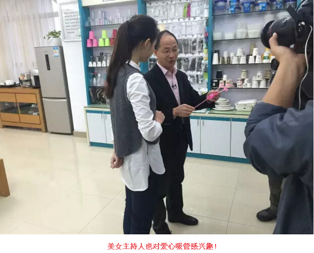 節目組剛來(lái)“雙童”第一次踩點(diǎn)時(shí),導演哈敏就“看上了”我們的當家產(chǎn)品愛(ài)心吸管。這可是我們雙童目前單價(jià)最高,也最復雜的一款創(chuàng )新產(chǎn)品呢!小小一根吸管,有20多個(gè)零件組成,可以供兩個(gè)人飲用,而且完美避免了液體回流和細菌交叉感染的問(wèn)題。再看看外形,一個(gè)紅彤彤的愛(ài)心,在第一時(shí)間就抓住了你的眼球,讓你心跳都加快了,難怪我們的主持人美女也對這款產(chǎn)品愛(ài)不釋手,讓當家人在錄制時(shí)重新介紹一遍呢!