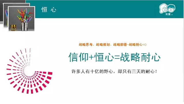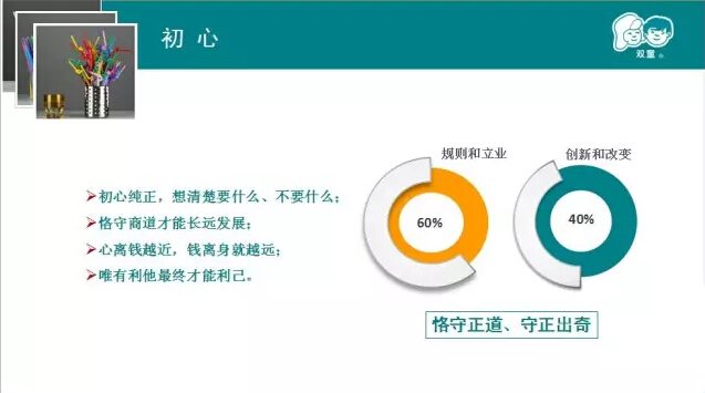 當家人樓總的此次分享,從“雙童是如何成為隱形冠軍及當家人樓總對自身的定位出發(fā),圍繞著(zhù)匠人之心這個(gè)主題,將當家人對企業(yè)、制造業(yè)的思考和看法都講得非常透徹!以下是部分課件內容,吸管妞也大方分享給大家啦!