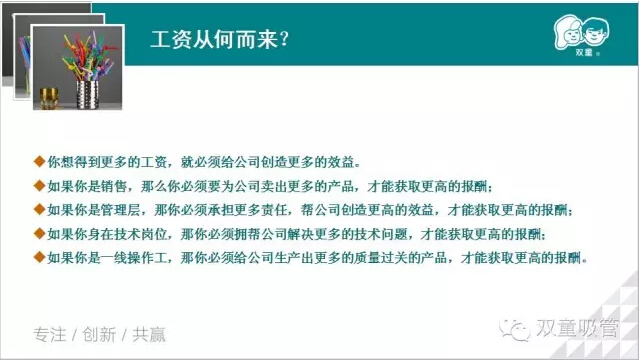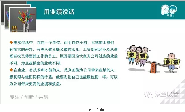 接下來(lái),吸管妞講起了我們雙童的社會(huì )案例叢書(shū)中的小故事,并通過(guò)許多個(gè)案例,向大家說(shuō)明了“誰(shuí)給你發(fā)工資”,“工資是什么?”和“如何獲得高工資”等問(wèn)題。通過(guò)這堂課,大家也明白了,只有自己把握手上的機會(huì ),為老板增加收入,為公司賺的更多的利潤,你才能反過(guò)來(lái)借用公司和老板的資源,才能升職加薪!