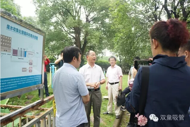 來(lái)者皆是客,當家人樓總自然也是全情奉獻,熱情接待。一行人先是來(lái)到了我們的中水回收池,樓總給眾人講解了我們雙童的廢水循環(huán)利用的系統和原理,之后又參觀(guān)了雨水收集處、垃圾分類(lèi)站等地。眾人對雙童這種生態(tài)循環(huán)、為社會(huì )節約資源的做法點(diǎn)了一個(gè)大大的贊。
