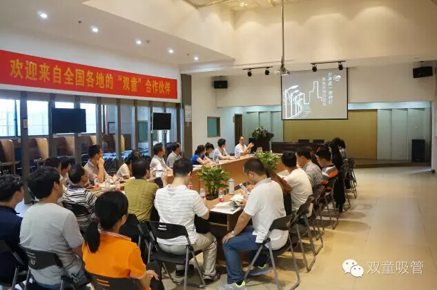 一到“雙童”,大家就參觀(guān)起了行政辦公室和吸管樣品房,當家人樓總介紹了一系列他們從沒(méi)見(jiàn)過(guò)的創(chuàng )新吸管,讓他們驚訝的是,原來(lái)一根小小的吸管也可以有這么多的功能可以開(kāi)發(fā)。