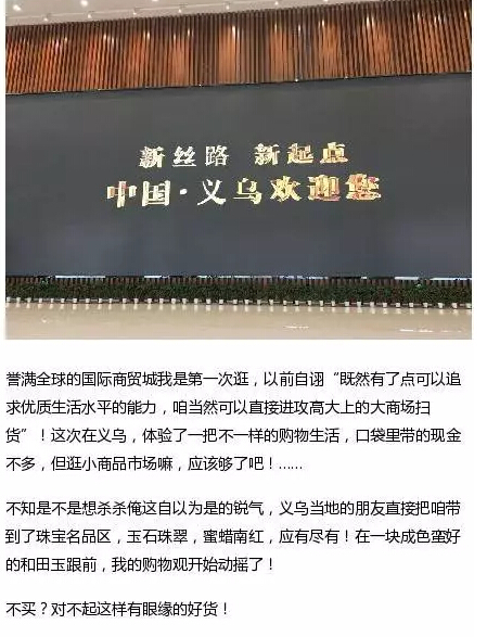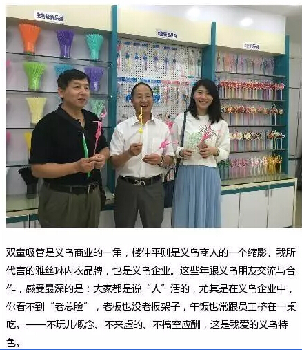 6月2日,“雙童”來(lái)了幾位貴客,有微博紅人@傳媒老王 ,也有著(zhù)名作家蘇芩。當家人樓總向來(lái)喜歡交“網(wǎng)友”,見(jiàn)到幾位大咖更是熱情接待。這不,作家蘇芩在回去后,在微博上寫(xiě)了一篇關(guān)于義烏的文章,里面也重點(diǎn)提到了“雙童”的工匠精神和精細化管理呢!下面妞就把這篇文章照搬過(guò)來(lái),和大家一起分享!