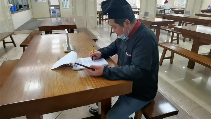 食堂師傅正在對驗收菜品進(jìn)行登記
