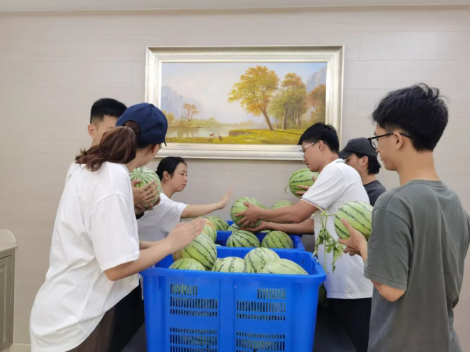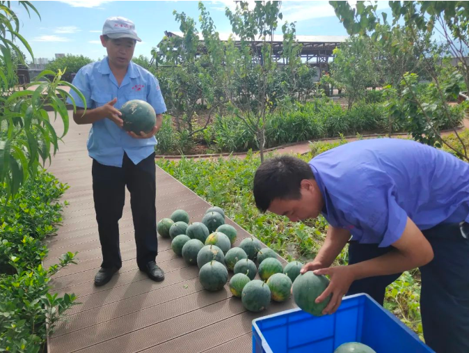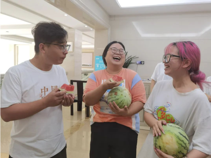 雙童:炎炎夏日、快來(lái)吃瓜啦!屋頂花園的西瓜豐收了!所有員工在今天秒變“吃瓜群眾”!