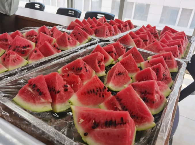 “大家快來(lái)吃瓜啦!”安靜的辦公室里突然傳出一聲聲呼喚。緊接著(zhù)一盤(pán)盤(pán)西瓜就出現在——原來(lái)是生態(tài)園瓜田大豐收啦!
