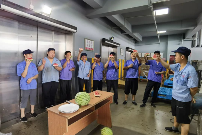 物流科裝卸工們一起舉著(zhù)瓜說(shuō)“甜”~