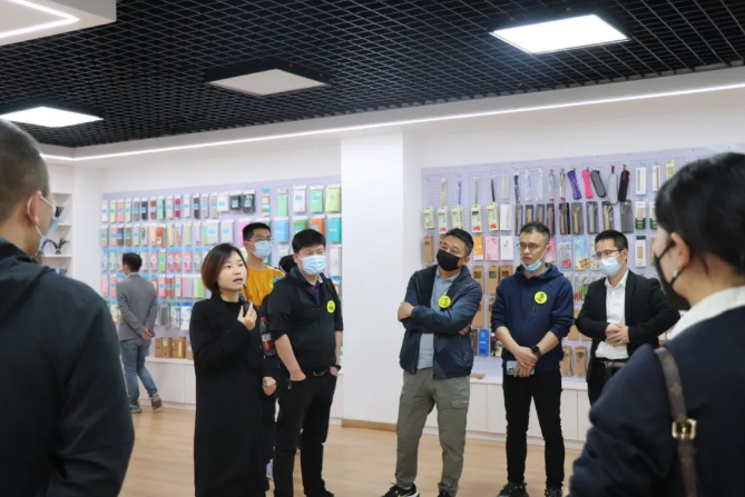 第三創(chuàng )業(yè)體樣品間,孟竹燕與雙童商學(xué)院學(xué)員們介紹