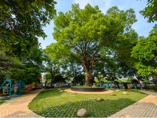 如今的“雙童1號樹(shù)”早已是枝繁葉茂,普通的手機相機,也逐漸容納不了它的碩大體積!當家人樓仲平還在這里建設了一個(gè)“1號樹(shù)小公園”,為大家提供了工作之余休閑放松的好去處。