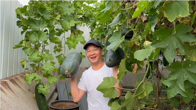秋季不愧是收獲的季節,在園丁叔叔的辛勤栽培下,空中菜園現在可謂是處處都是寶!看,這一大片的冬瓜像是通關(guān)游戲里的木樁似的,想過(guò)去這條路可還真的不容易。這細細的莖條還能掛住這么大的冬瓜,太牛了!