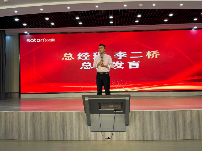 緊接著(zhù)安??瓶崎L(cháng)黃建強對第三季度消防、安全等工作進(jìn)行總結,并對全體員工進(jìn)行生產(chǎn)安全教育培訓及日常消防安全知識科普,希望大家在工作和日常生活中保護自己,保護他人,讓安全成為一種習慣。在大會(huì )最后,“雙童”總經(jīng)理李二橋作總結發(fā)言。公司前三季度經(jīng)營(yíng)情況同比增長(cháng)情況良好,雖然經(jīng)歷八月疫情,但因為“雙童”人的通力合作,已經(jīng)盡最大可能降低負面影響,感謝全體員工的辛勤付出!李總還在發(fā)言中強調,今年國內防疫局勢緊張,全體員工應繼續積極配合疫情防控要求,及時(shí)響應上級號召。總經(jīng)理李二橋在員工大會(huì )上發(fā)言另一方面,“雙童”現在正著(zhù)力自動(dòng)化升級,相信在大家的共同努力下,明年生產(chǎn)效率定會(huì )有所提升,讓一線(xiàn)員工能夠得到更好的福利待遇。感謝一路陪伴“雙童”成長(cháng)的所有“雙童”人,在大家的陪伴與付出下,“雙童”一定會(huì )一年比一年好!