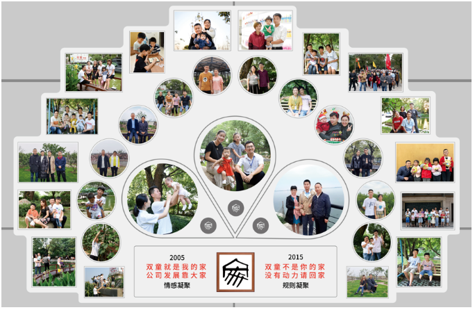 雙童早期團隊的很多成員,都是在公司內部找到自己的人生伴侶,并生兒育女、組成一個(gè)個(gè)小家庭,逐漸形成雙童特色的“家文化”。在這樣的企業(yè)文化下,很多員工早已把公司當成了“第二個(gè)家”。生活在“雙童”大家庭的一個(gè)個(gè)小家