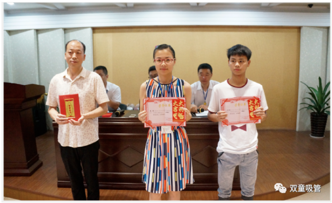 2015年雙童產(chǎn)品創(chuàng )新大獎賽前三名獲得者合影留念