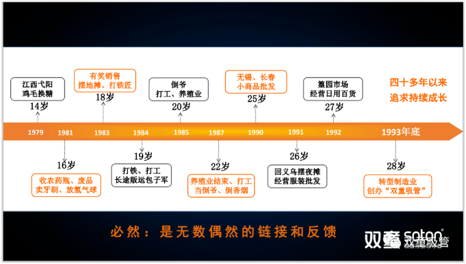 曾經(jīng)“雙童”樓仲平受深圳智和匯邀請前往深圳出差,機場(chǎng)候機過(guò)程中,登機時(shí)間由于天氣的原因一而再的延遲,延誤了將近兩個(gè)多小時(shí),許多人也流露出些許的不耐煩,但樓仲平依舊不急不躁的繼續閱讀。伴隨著(zhù)不斷學(xué)習成長(cháng)的過(guò)程,樓仲平近些年來(lái)的生活方式也是十分“孤獨”的。當很多創(chuàng )業(yè)者還整天忙于趕圈子,忙于追隨潮流時(shí),樓仲平選擇放棄社會(huì )的諸多誘惑,離開(kāi)更多的掙錢(qián)門(mén)道,遠離更多的“孤朋酒友",讓自己安靜下來(lái),從而沉下心來(lái)思考閱讀。至此,他遠離了社會(huì )主流,脫離了各種圈子,不沽名釣譽(yù),理解“舍得”、懂得“放棄”,學(xué)會(huì )忍受孤獨,享受寂寞,從而給自己創(chuàng )造出更多的時(shí)間、空間和自由!2015年,因生產(chǎn)要素成本不斷增加,以及經(jīng)營(yíng)團隊訴求不斷加大,樓仲平深感“雙童”原有的經(jīng)營(yíng)模式已很難再形成突破,亟需一次徹底的組織變革來(lái)打開(kāi)吸管的天花板。為此,樓仲平輾轉各地學(xué)習股改、自主經(jīng)營(yíng)和阿米巴模式等課程,開(kāi)始了更加迅猛和快速的迭代成長(cháng)。經(jīng)過(guò)一段時(shí)間的系統性學(xué)習后,樓仲平將學(xué)習到的理念知識應用到“雙童”的經(jīng)營(yíng)實(shí)踐中,組合出了適合企業(yè)發(fā)展的自組織創(chuàng )業(yè)裂變模式。
