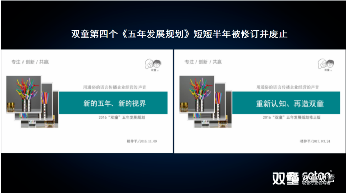 2010年,樓仲平在理解人性活力的“自然遞減”的現象以及經(jīng)理人老化自然規律后,下定決心通過(guò)《雙童五年發(fā)展規劃》的組織變革來(lái)實(shí)施解決“經(jīng)理人老化”問(wèn)題:明確扶植年輕干部,選拔培養優(yōu)秀的年輕領(lǐng)導層,解決二代傳承接班等問(wèn)題。