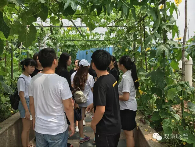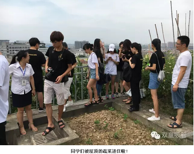 來(lái)到屋頂菜園時(shí),看到這么多新鮮的蔬菜瓜果,大家都淡定不起來(lái)了呢!吸管妞向大伙介紹了“空中菜園”的總面積有近800平方米,每個(gè)種植區的土層均有1米2深,看到這里大家紛紛開(kāi)始敬佩樓總對工廠(chǎng)的設計。