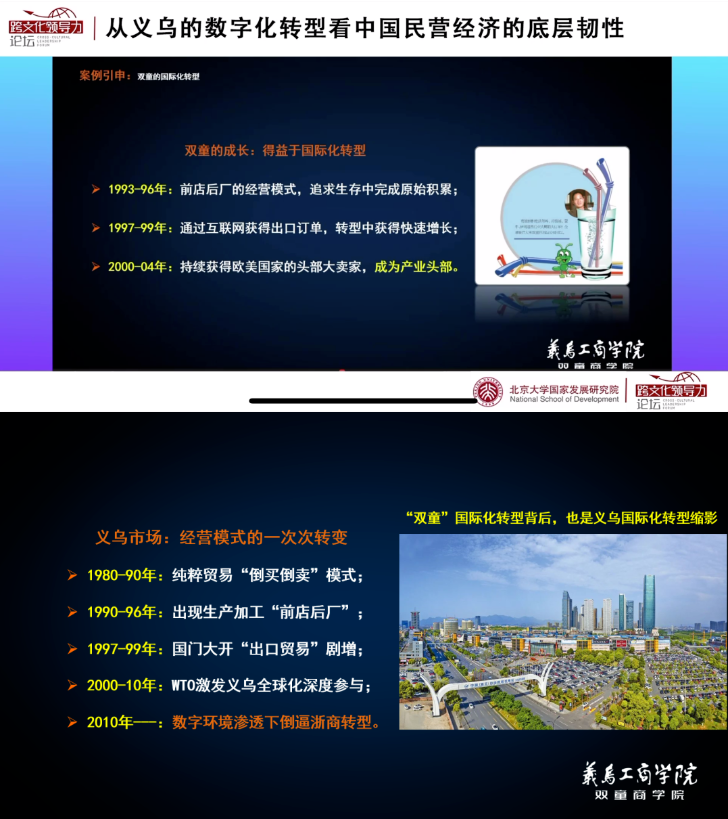 近期,“雙童”樓仲平受北大國發(fā)院邀請,在跨文化領(lǐng)導力論壇做線(xiàn)上直播《從義烏的數字化轉型看中國民營(yíng)經(jīng)濟的底層韌性》課程。這堂直播課上,樓仲平從中國造隱形冠軍的視角,帶領(lǐng)大家感受中國民營(yíng)經(jīng)濟的國際化轉型,及其歷次轉型中展現出來(lái)的底層韌性。
