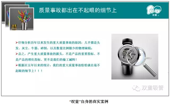第二章則是本次課程的重中之重。樓總結合我們“雙童”自身的真實(shí)案例,來(lái)說(shuō)明實(shí)施精細化管理對產(chǎn)品質(zhì)量的重要性!通過(guò)和日本客戶(hù)的合作,我們一次次地提升,一次次地逼著(zhù)自己做更高的要求和改變,以此來(lái)達到客戶(hù)的需求,更通過(guò)這些舉措,慢慢地改變我們自己的產(chǎn)品質(zhì)量和員工素質(zhì)。