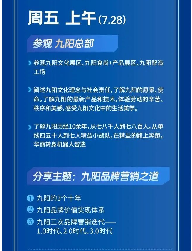通過(guò)參觀(guān)展廳和自動(dòng)化生產(chǎn)線(xiàn),以及企業(yè)專(zhuān)業(yè)人員講解關(guān)于九陽(yáng)、雙童和義烏小商品城的特色企業(yè)文化,更有思享會(huì )全面真實(shí)的案例呈現。