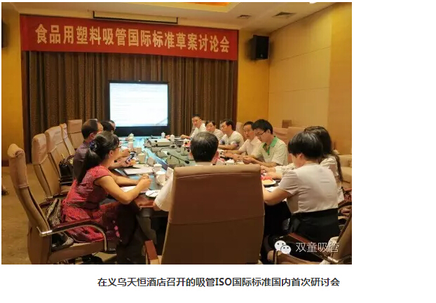2012年7月24日,由國家塑料制品標準化技術(shù)委員會(huì )和“雙童”公司召集國內吸管行業(yè)的十多家生產(chǎn)企業(yè),在義烏市天恒酒店召開(kāi)ISO國際標準國內分組研討會(huì )。會(huì )上集中討論了由“雙童”提交的吸管ISO國際標準草案初稿,決定采用屬地原則的有利條件,在中國《聚丙烯飲用吸管》國家標準的基礎上進(jìn)行ISO國際標準的條文延伸和編輯,以最大程度上有利于中國吸管行業(yè)的健康發(fā)展。