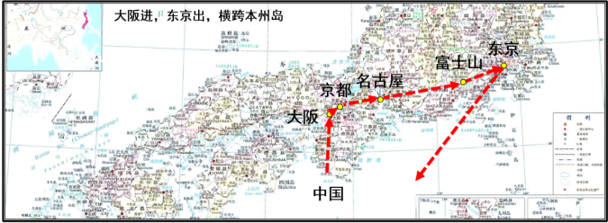 本次日本研學(xué),將以富士山為中心,從關(guān)西到關(guān)東,直線(xiàn)距離約600km。