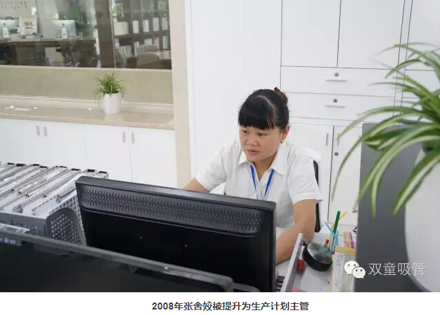 后來(lái),她又成為了加管工,由于工作優(yōu)異,領(lǐng)導提拔她做了班長(cháng)。結婚生子后,她回到公司又相繼做了質(zhì)檢員、終檢員等工作。2008年,她被提升為生產(chǎn)計劃主管,這一干就干到了現在。