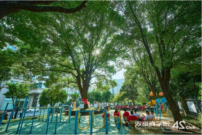 40余位師生團走出教室,來(lái)到“雙童”空中花園,微風(fēng)中帶著(zhù)清新的柚香,休閑的環(huán)境讓大家敞開(kāi)心扉,更為親近。