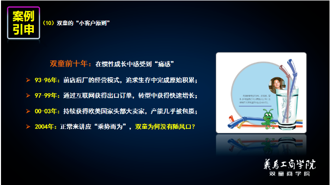 所以從2004年開(kāi)始,“雙童”開(kāi)始慢慢放棄“大客戶(hù)”,轉而推行“小客戶(hù)原則”。通過(guò)戰略轉變,“雙童”把原先每100根吸管僅8分錢(qián)的利潤,提升到了有20%以上利潤率的提價(jià)空間,牢牢掌握了“雙童”經(jīng)營(yíng)的主動(dòng)權。