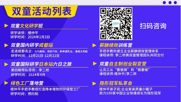 近幾年“雙童”鼓勵創(chuàng )業(yè)創(chuàng )新,鼓勵小伙伴創(chuàng )業(yè),通過(guò)自主制創(chuàng )業(yè)裂變機制,三年間獲得了2.6倍增長(cháng),相當于再造了一個(gè)“雙童”。同時(shí),作為校企合作項目的第五創(chuàng )業(yè)體-雙童商學(xué)院,還將這套機制轉化成一門(mén)可落地的課程,目前已影響全國各地1000多家中小企業(yè),讓更多企業(yè)獲得持續增長(cháng)的新路徑。