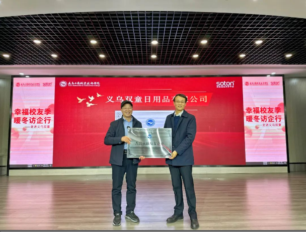 12月12日,義烏工商職業(yè)技術(shù)學(xué)院舉行“幸福校友季·暖冬訪(fǎng)企行”系列活動(dòng),校黨委書(shū)記李昌祖一行走進(jìn)“雙童”深入調研,并舉行教育基金捐贈儀式和【樓仲平獎學(xué)金】設立儀式!