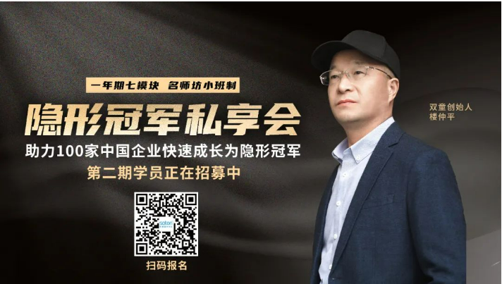 歡迎您走進(jìn)「樓仲平隱形冠軍私享會(huì )」課堂,在樓仲平老師的陪伴下,學(xué)習借鑒雙童30年的成功的經(jīng)驗積累,助力您在創(chuàng )業(yè)路上更加順遂,在遇到抉擇時(shí)能做出更加理性的判斷!