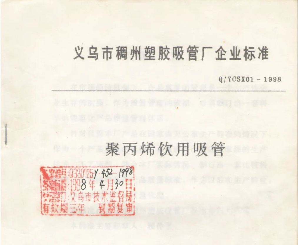 1998年 | 《聚丙烯飲用吸管》企業(yè)產(chǎn)品標準 |