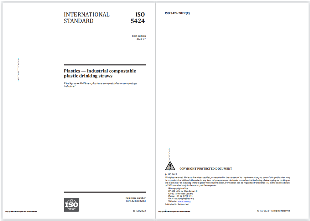 ISO 5424《塑料-工業(yè)堆肥塑料吸管》國際標準文件封面