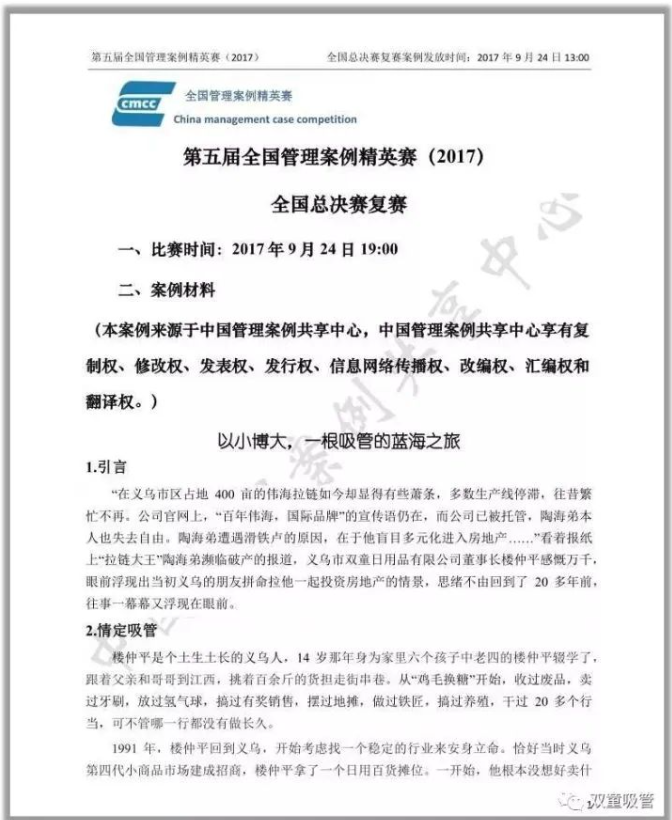 同時(shí),“雙童”作為國家案例庫樣板企業(yè),先后接待了浙大、南京大學(xué)、大連理工、浙工大、浙師大、國科大等數十所院校到“雙童”做案例采編工作。其中浙江工業(yè)大學(xué)和南京大學(xué)采編的管理案例分別被評為2016年和2017年度全國管理案例的百優(yōu)案例。