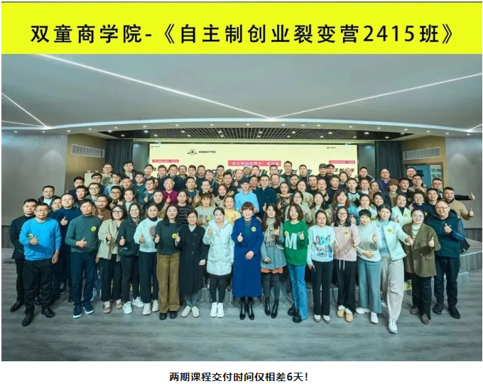 實(shí)際上,雙童商學(xué)院本打算將第2314期《自主制創(chuàng )業(yè)裂變營(yíng)》作為春節前的收官課程,但很多未報上名的學(xué)員表示,非常希望能在2024年伊始就為自己企業(yè)搭建一個(gè)可持續的激勵機制,以全新的面貌帶領(lǐng)團隊發(fā)展,所以在學(xué)員的強烈要求下,雙童商學(xué)院特意增設了2024年首期《自主制創(chuàng )業(yè)裂變營(yíng)》!
