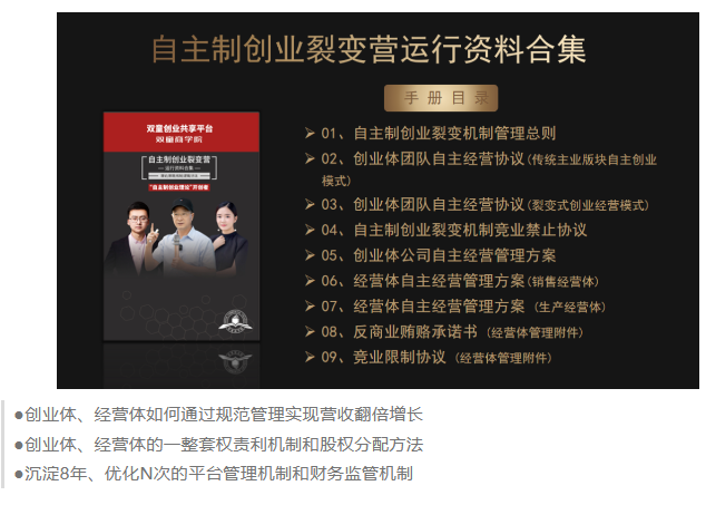 3、交付自主制創(chuàng )業(yè)裂變模式的各項規則、文本、合同等書(shū)面資料
