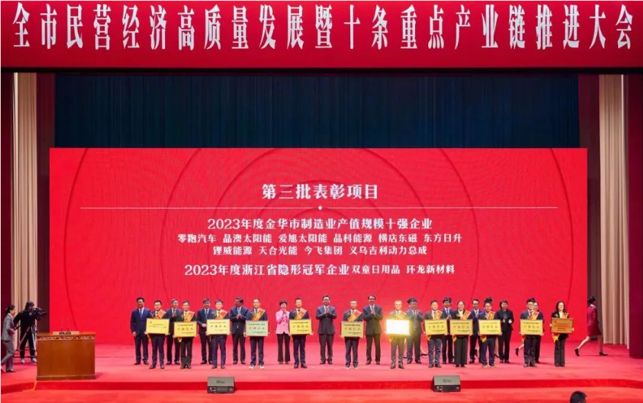1)榮獲“浙江省隱形冠軍企業(yè)”榮譽(yù)稱(chēng)號。其實(shí)早在去年12月份,浙江省相關(guān)單位就已經(jīng)公示過(guò)名單,此次大會(huì )領(lǐng)回了榮譽(yù)匾額。