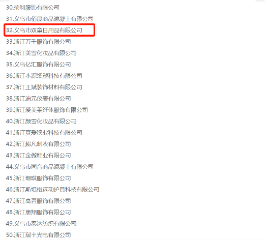 2月20日,義烏市人民政府網(wǎng)公布了“全市工業(yè)企業(yè)50強”名單,“雙童”首次登榜,位居第32位!